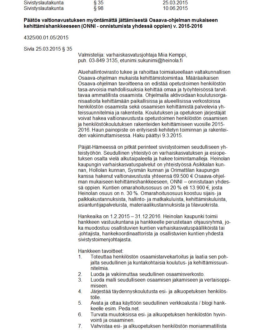 Pöytäkirja 10.06.2015 Pykälä 98