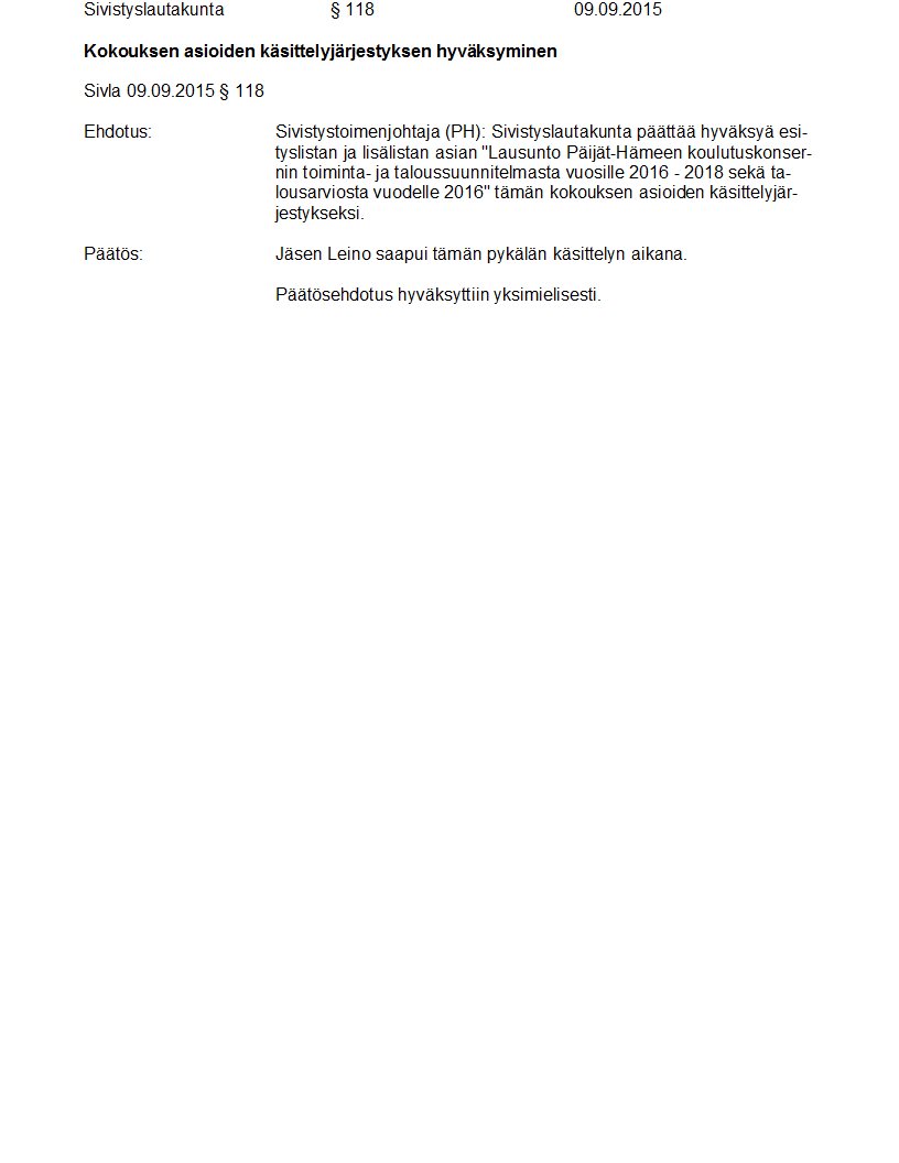 Pöytäkirja 09.09.2015 Pykälä 118