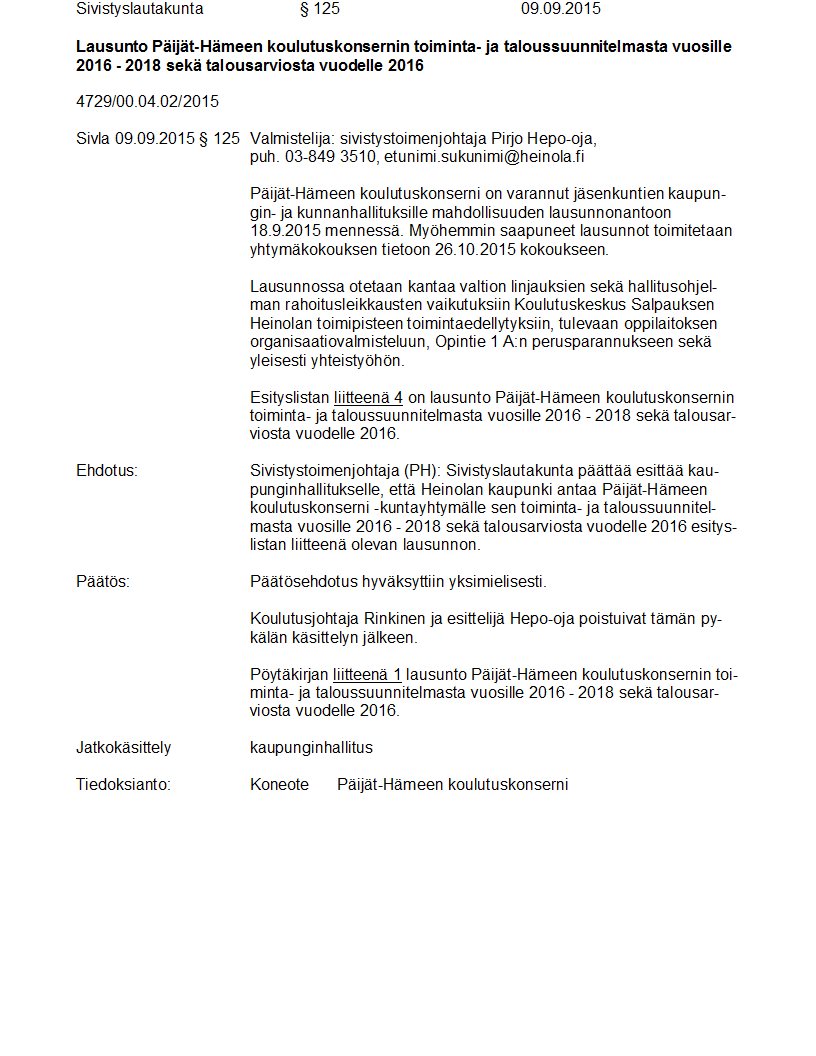 Pöytäkirja 09.09.2015 Pykälä 125