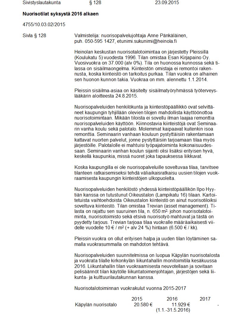 Pöytäkirja 23.09.2015 Pykälä 128
