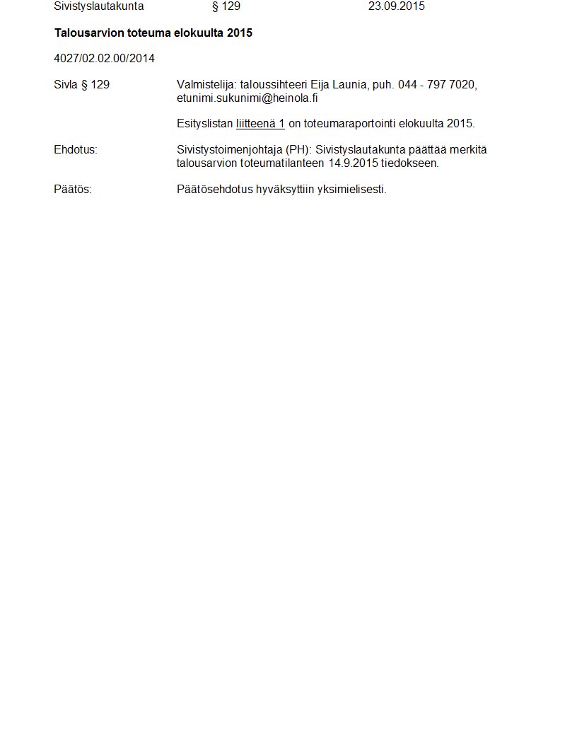 Pöytäkirja 23.09.2015 Pykälä 129