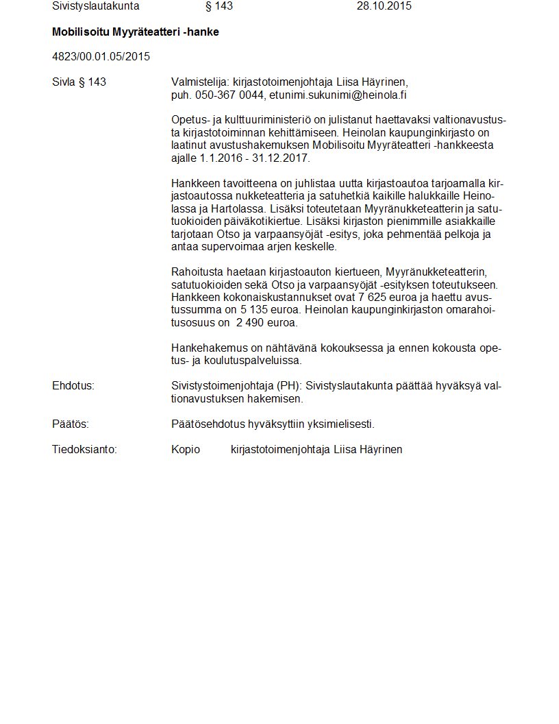 Pöytäkirja 28.10.2015 Pykälä 143