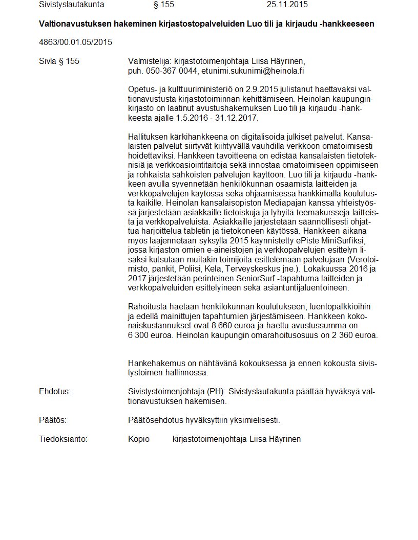 Pöytäkirja 25.11.2015 Pykälä 155