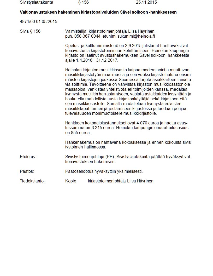 Pöytäkirja 25.11.2015 Pykälä 156