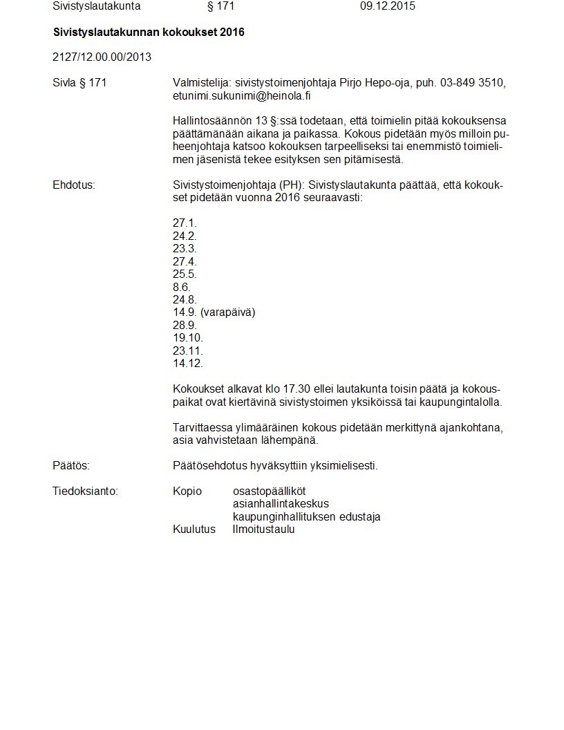 Pöytäkirja 09.12.2015 Pykälä 171