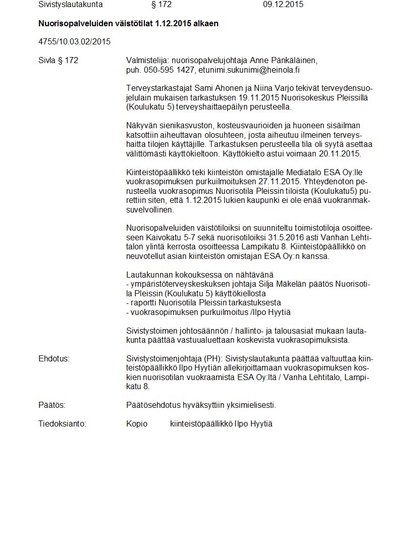 Pöytäkirja 09.12.2015 Pykälä 172