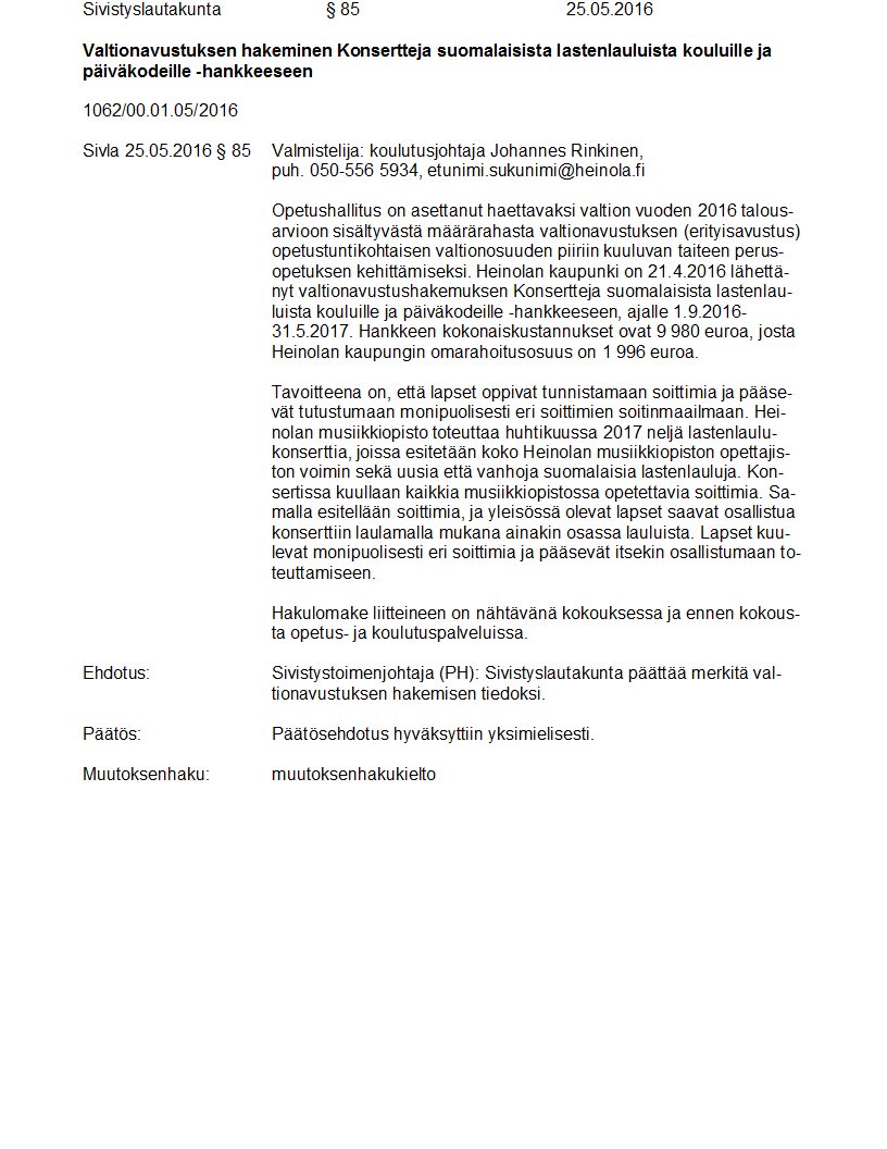 Pöytäkirja 25.05.2016 Pykälä 85