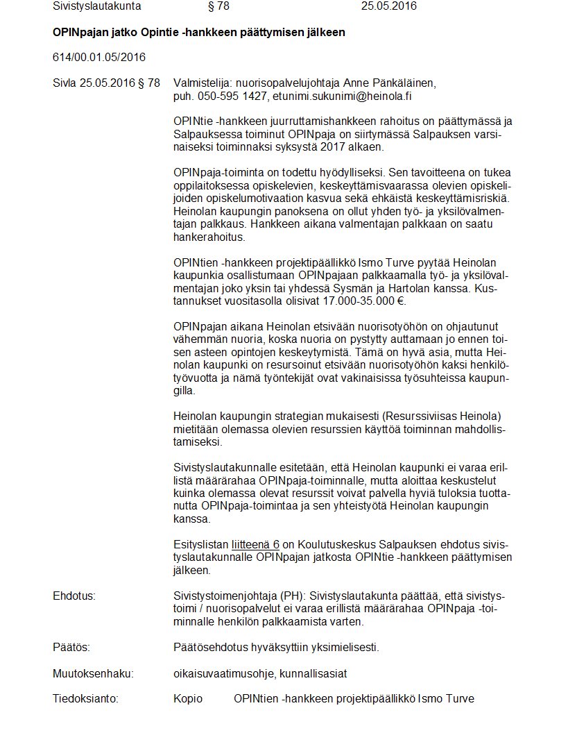 Pöytäkirja 25.05.2016 Pykälä 78
