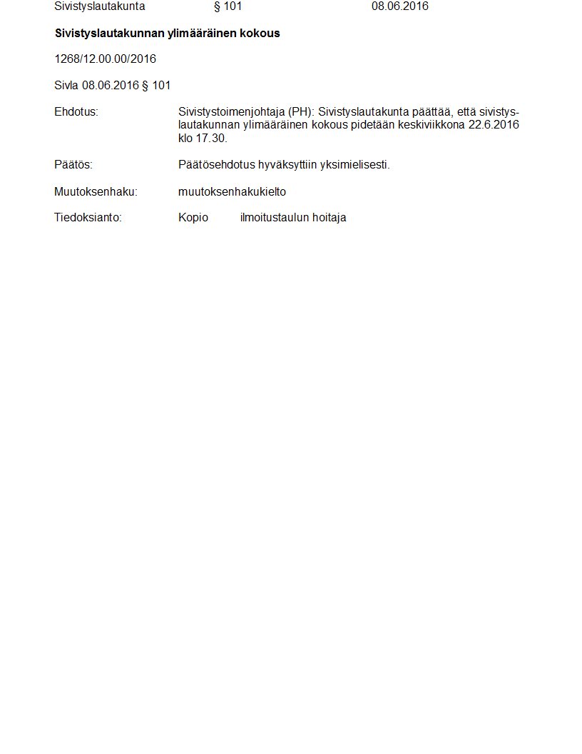 Pöytäkirja 08.06.2016 Pykälä 101
