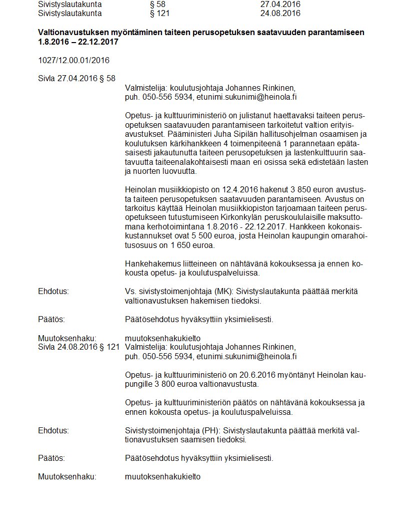 Pöytäkirja 24.08.2016 Pykälä 121