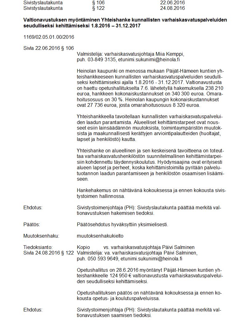 Pöytäkirja 24.08.2016 Pykälä 122