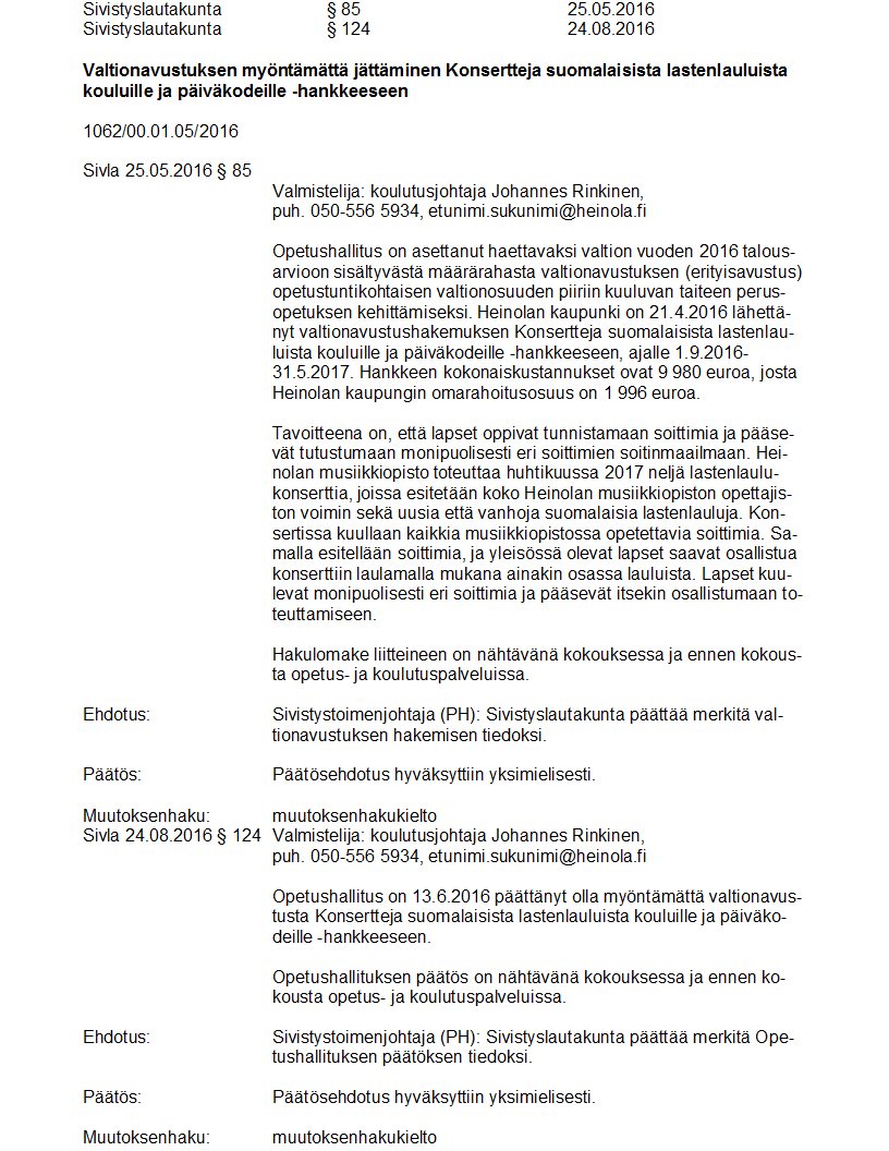 Pöytäkirja 24.08.2016 Pykälä 124