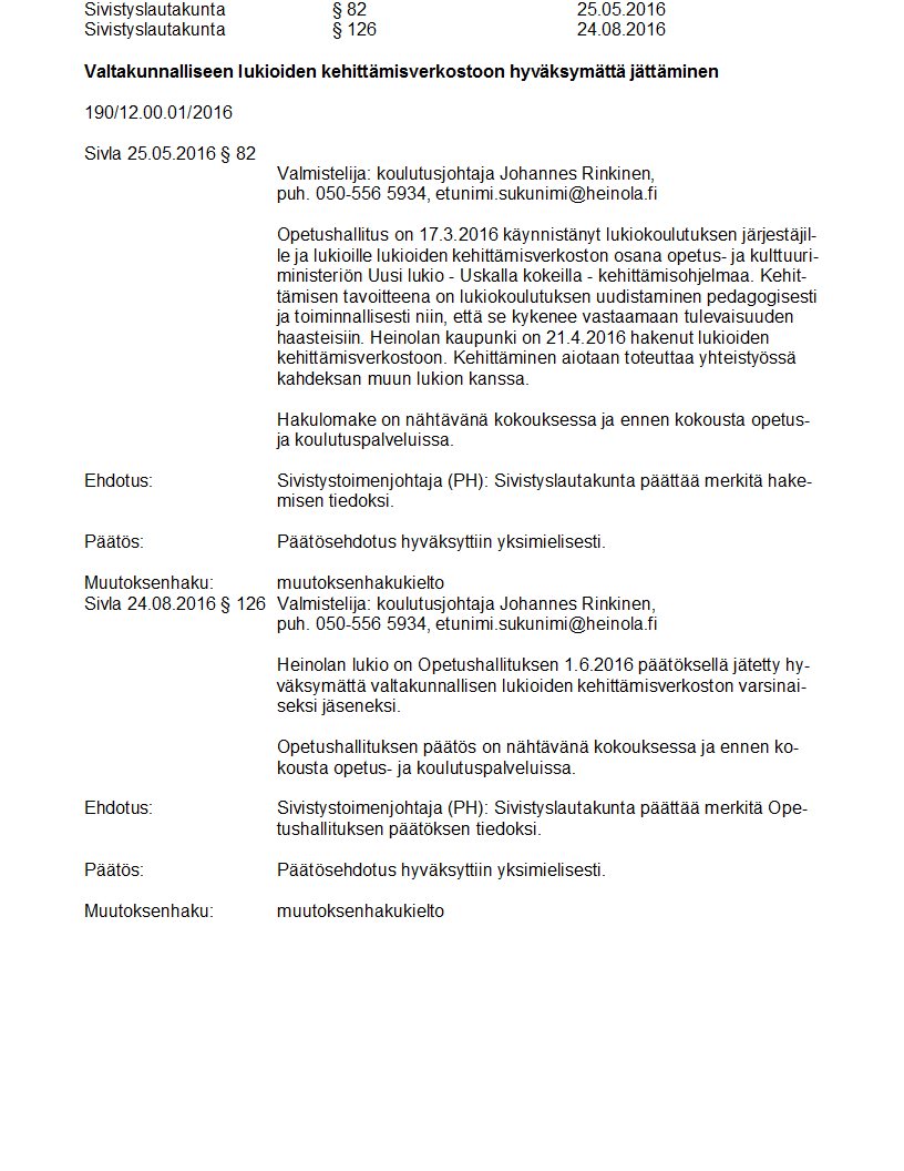 Pöytäkirja 24.08.2016 Pykälä 126