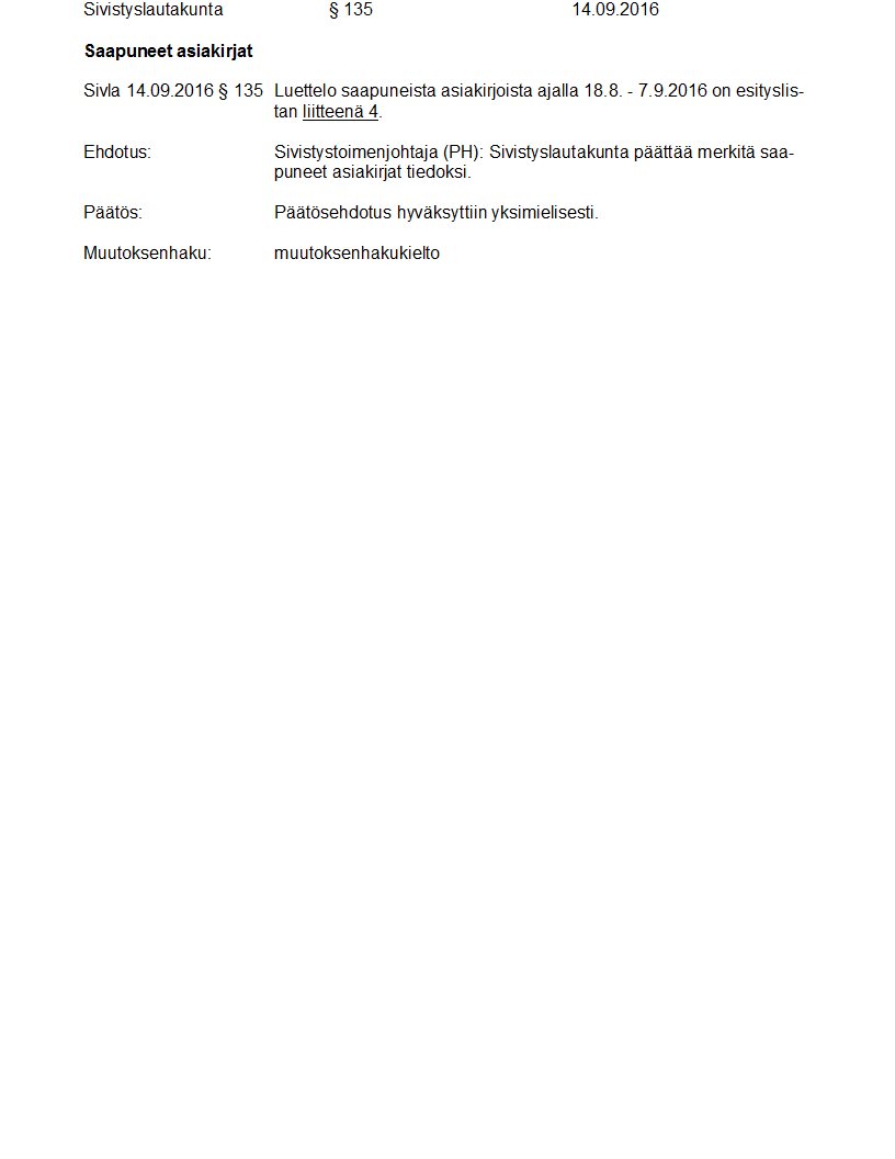 Pöytäkirja 14.09.2016 Pykälä 135