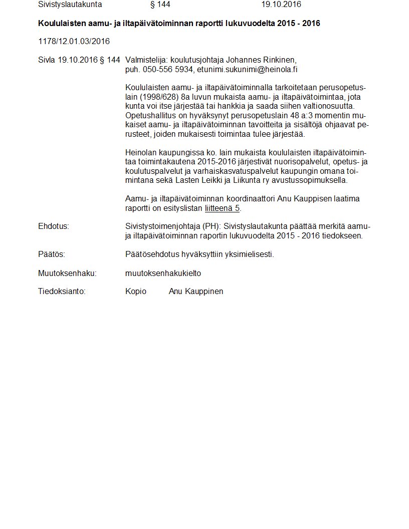 Dynasty tietopalvelu Haku RSS Heinolan kaupunki