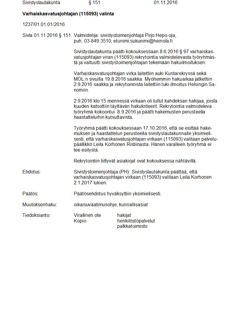 Pöytäkirja 01.11.2016 Pykälä 151