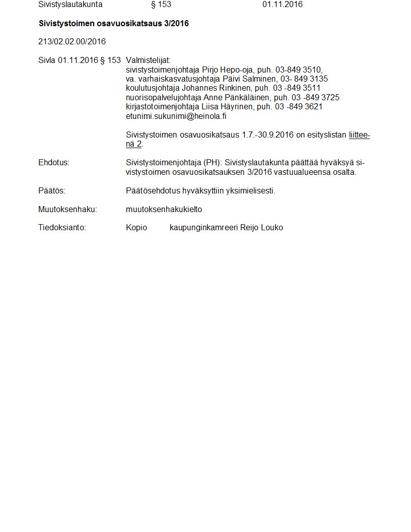 Pöytäkirja 01.11.2016 Pykälä 153