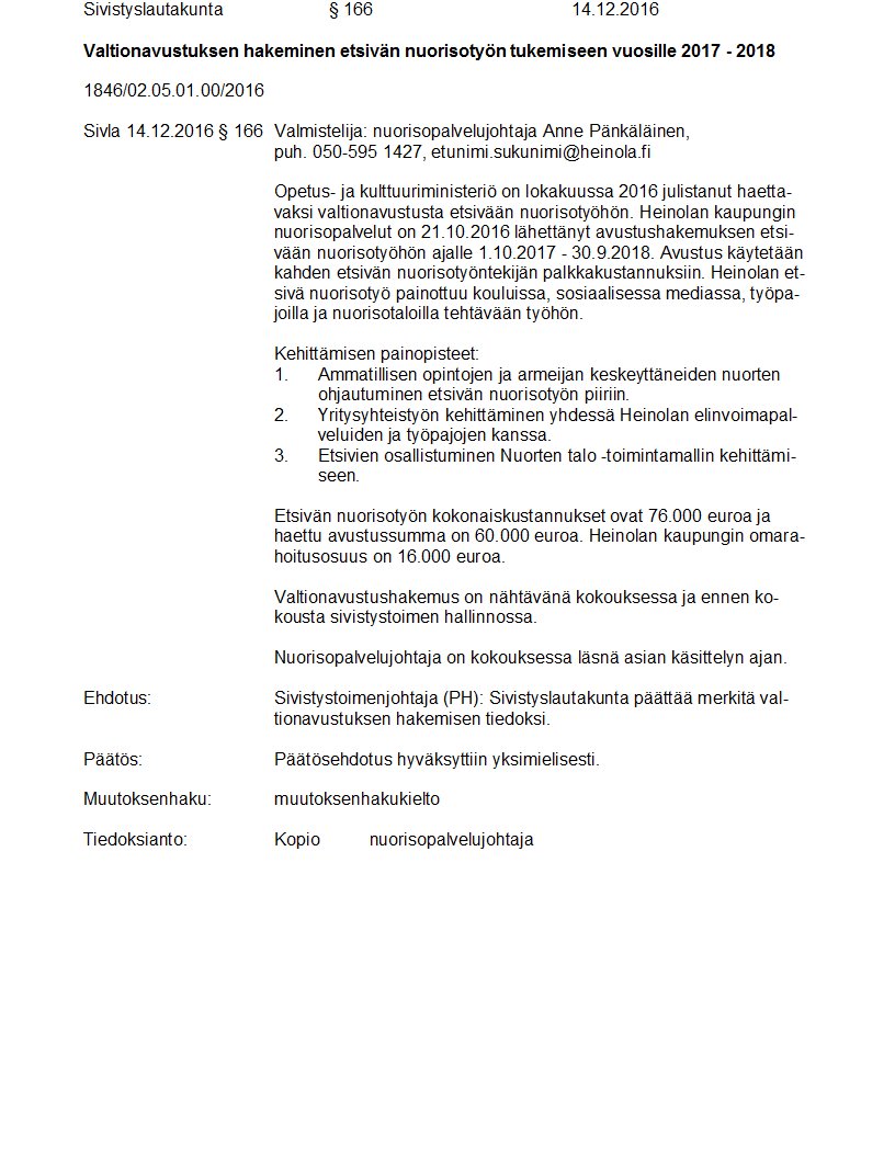 Pöytäkirja 14.12.2016/Pykälä 166