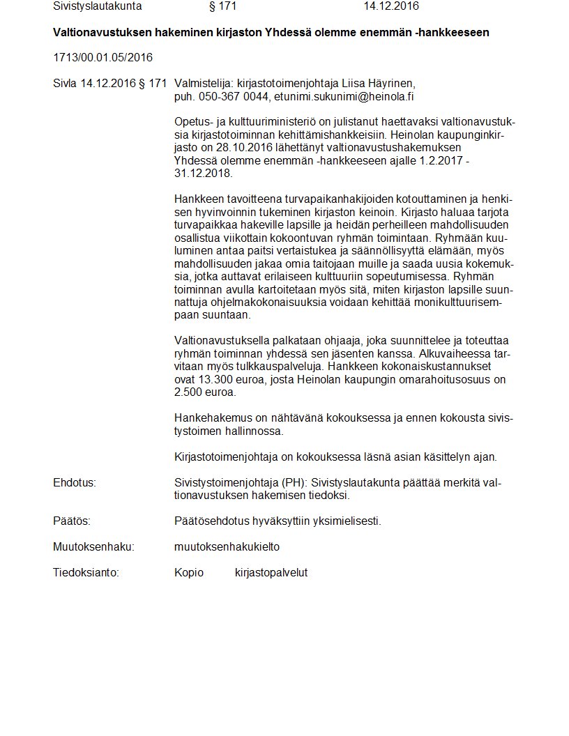 Pöytäkirja 14.12.2016/Pykälä 171