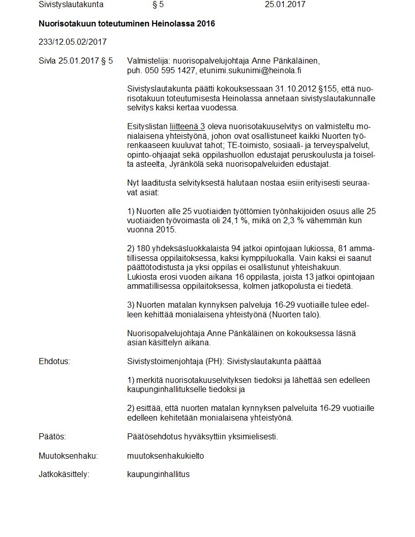 Pöytäkirja 25.01.2017/Pykälä 5